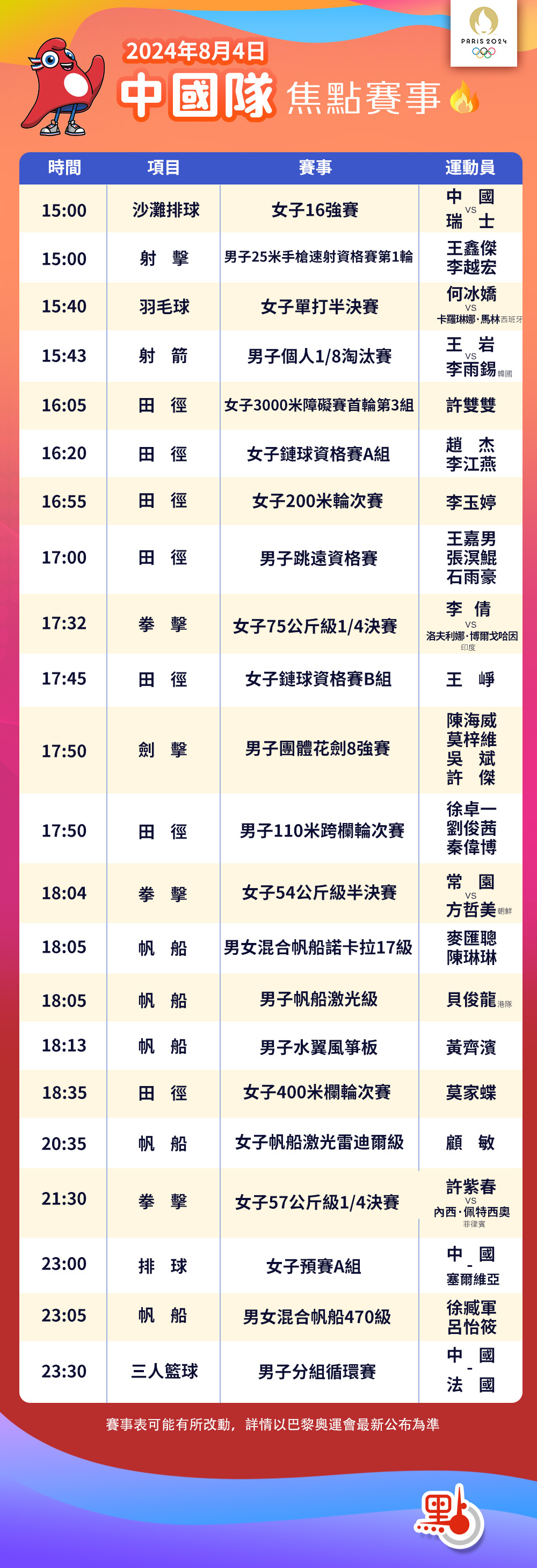 雖然中國選手無緣站上男子百米半決賽和決賽的跑道,但4日的多場資格賽會出現中國選手的身影。