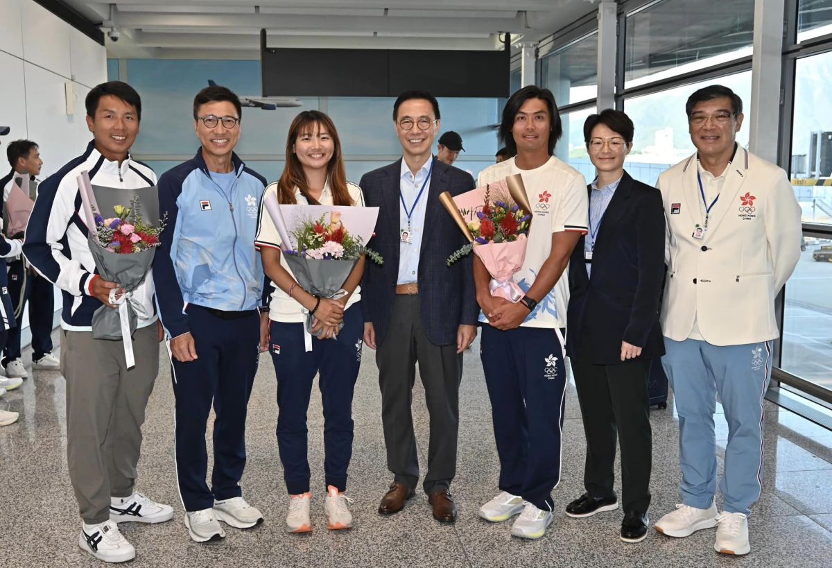 【點新聞報道】完成巴黎奧運賽事的港隊羽毛球隊運動員今早(4日)返港,包括混合雙打謝影雪及鄧俊文、女子雙打楊雅婷及楊霈霖、首次出戰單打項目的李卓耀及盧善恩,以及醫護團隊及支援人員。與代表團同行的還有港協暨奧委會義務秘書長楊祖賜和滑浪風帆總教練陳敬然團隊。