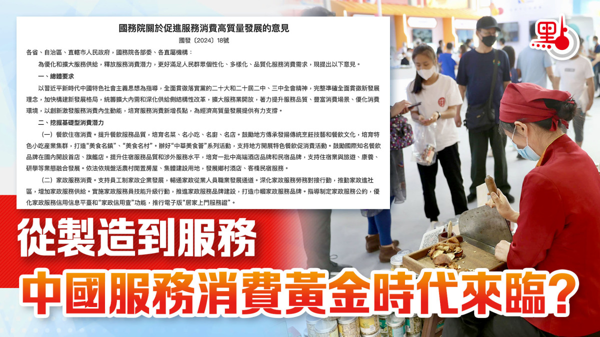 【點新聞報道】國務院近日發布《關於促進服務消費高質量發展的意見》,圍繞挖掘基礎型消費潛力、激發改善型消費活力、培育壯大新型消費等6個方面,在養老託育消費、數字消費、健康消費等20個領域提出具體要求。經濟學家、港股100強研究中心專家、新金融專家余豐慧對此表示,這一政策旨在通過促進服務消費的高質量發展,為中國經濟注入新的活力。