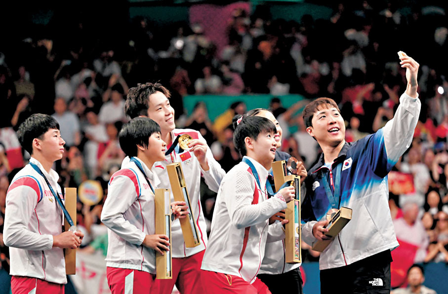 在當地時間上周二(7月30日)結束的乒乓球混雙比賽中,國家隊代表王楚欽和孫穎莎以局數4:2戰勝朝鮮組合李正植和金琴英,中朝韓分別獲得金銀銅獎牌。在賽後領獎台上,3國選手罕有同框自拍,引發熱議。