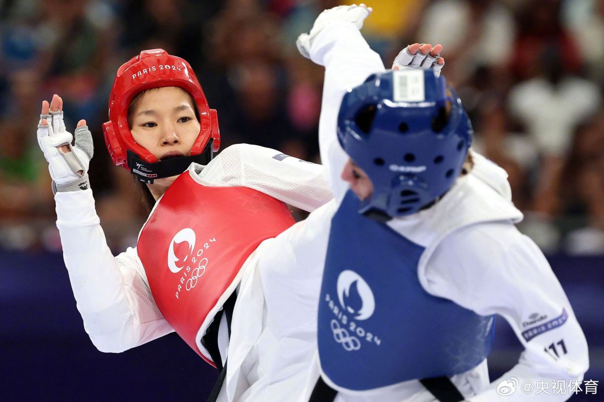 國家隊郭清晉級跆拳道女子49公斤級決賽。(央視體育微博)