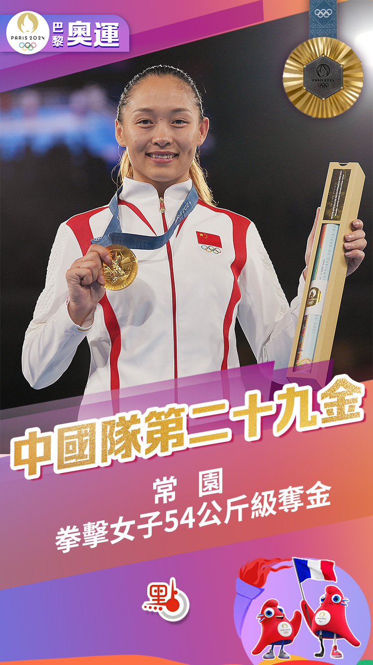 這也是中國代表團在巴黎奧運會上的第29枚金牌。