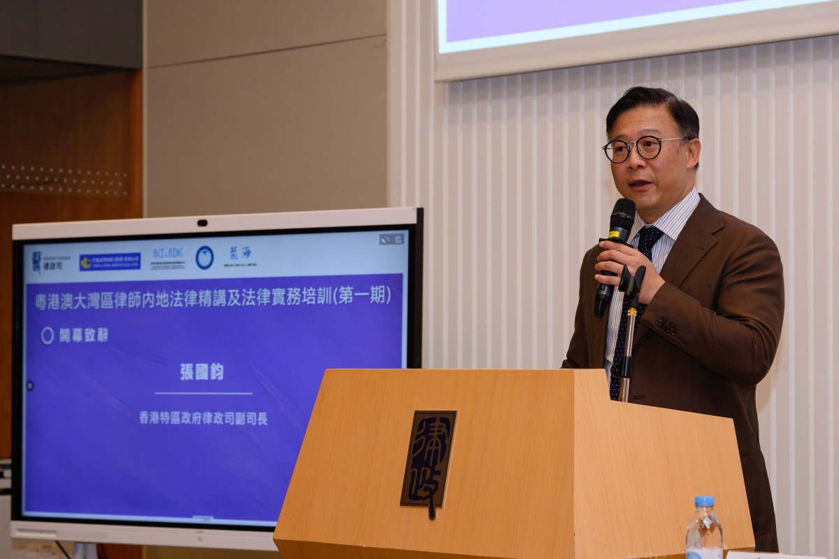 張國鈞表示,律政司一直非常重視大灣區法治建設的工作,會繼續按着今年4月發布的《粵港澳大灣區法治建設行動綱領》,推進機制、規則和人才三方面的聯通。當中,提升大灣區內法律人才的連接,以及專業交流的深度和廣度,是十分重要的環節。當局積極支持大灣區律師的各類培訓項目,深化區內的實務合作。
