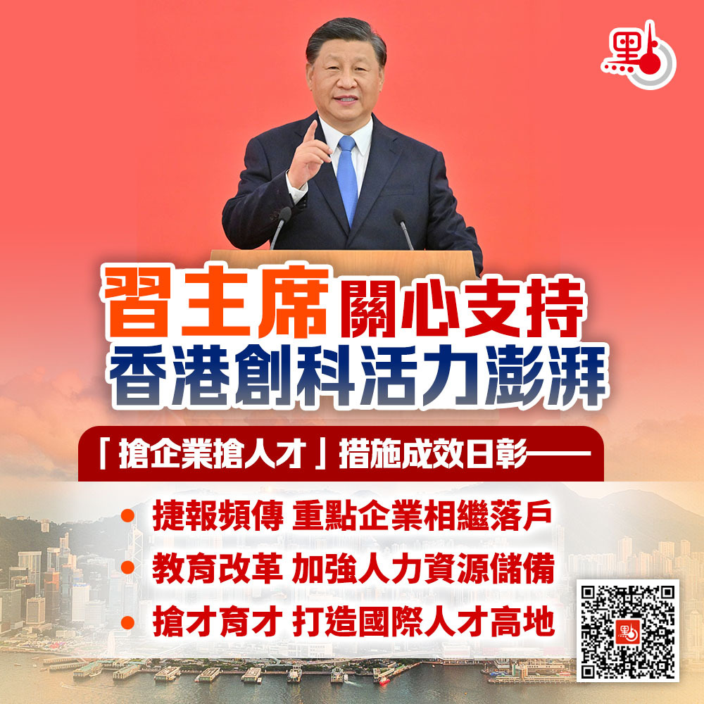 潮平兩岸闊,風正一帆懸。在習近平主席的關心支持下,特區政府團隊正齊心協力推進香港國際創科中心的建設,匯集更多國際人才、引進更多重點企業,向着香港創新科技發展藍圖的目標推進: