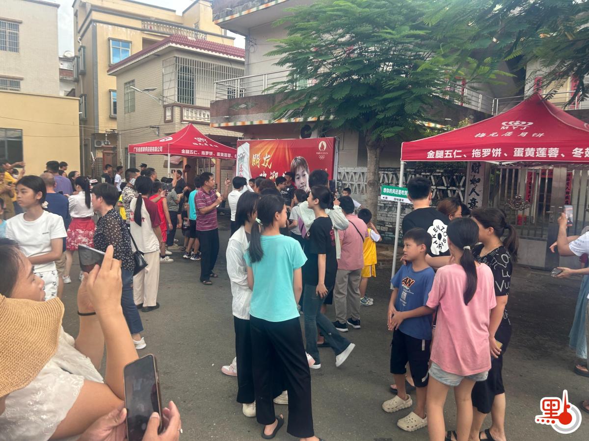 和3年前東京奧運會後相比,今次到訪邁合村的人流量多了數倍,持續時間更長,一定程度上也拉動了當地的消費。一條經過全紅嬋家門口的村道,三四百米的距離,有百餘個小吃攤位。全紅嬋家鄰居說,不管是不是邁合村的,甚至是外省人,只要找得到空位,都可以擺攤。