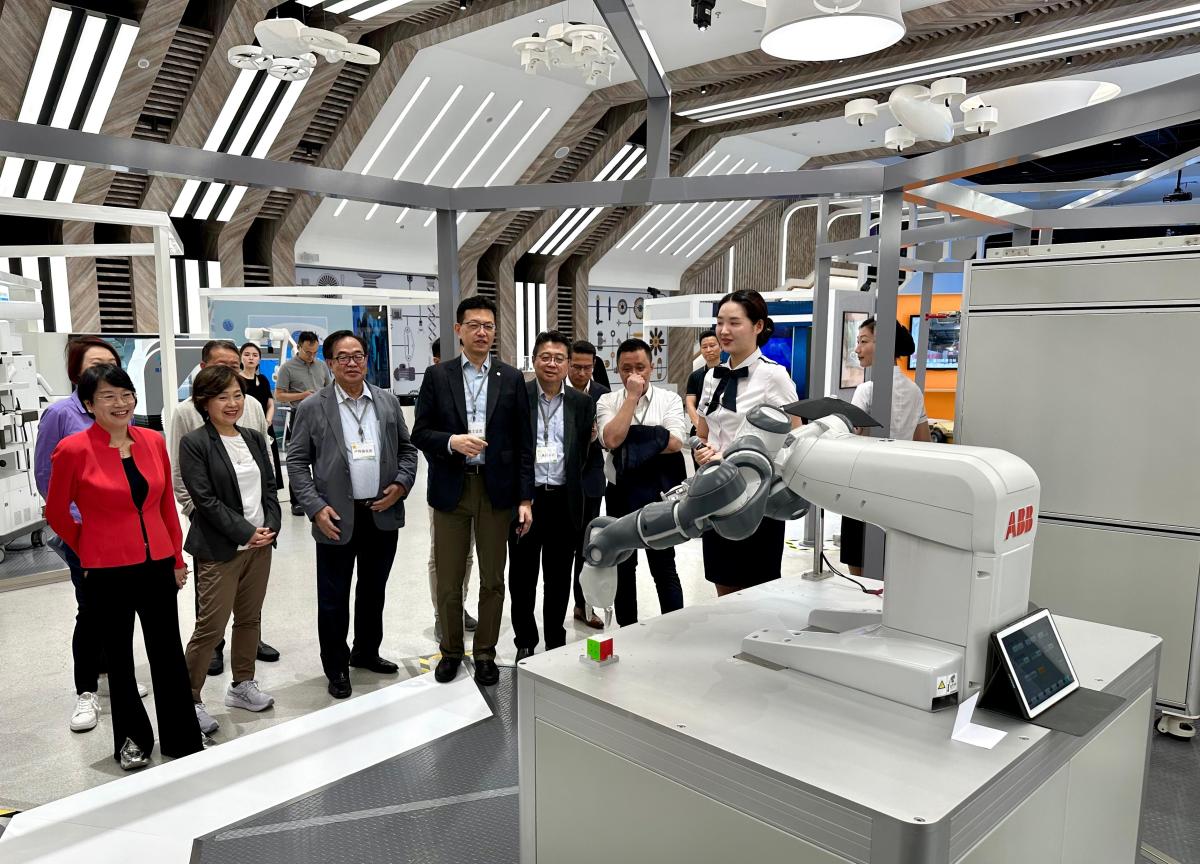 蔡若蓮與考察團一行上午參訪科創園區——張江機器人谷,了解當地創新科技業的最新發展和成就。蔡若蓮表示,香港特別行政區政府致力推動大學進行不同領域的學術研究,透過多項資助計劃提供支援。大學近年均積極推展科創研究工作和培育人才,包括增加相關課程和學額,並舉辦多元化活動,例如安排考察科研機構,以及鼓勵學生參與初創企業,以豐富體驗。她表示,在中小學方面,教育局持續透過多元支援策略,進一步推動STEAM(科學、科技、工程、藝術和數學)教育,包括更新學校課程、加強教師專業發展、為學校提供資源和支援,以及加強栽培具STEAM潛質的學生。