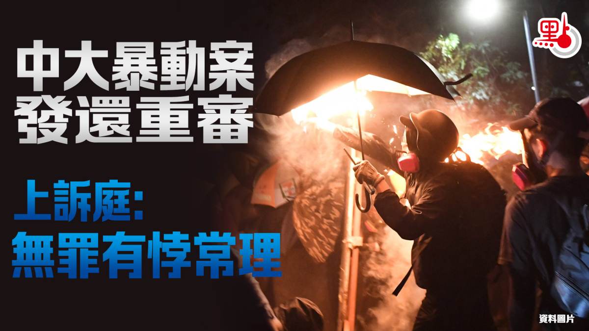 2019年11月12日,一批黑衣暴徒非法佔據中文大學二號橋攻擊防暴警,其中4人被控暴動罪。4人中,一名當時就讀理大的男生在區域法院受審後罪脫。律政司其後提出上訴,上訴庭今年7月裁定律政司上訴得直,並在昨日頒下判詞指,原審法官沒有正確、適當和充分考慮、分析各證供及其疊加效應,裁定被告無罪是有悖常理,遂撤銷其無罪裁決,發還原審重新考慮。案件排期9月5日在區域法院提訊,男生准續保釋。