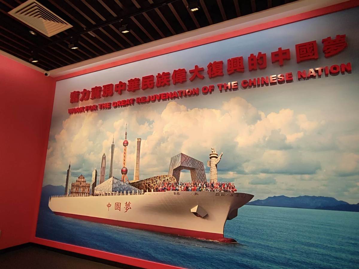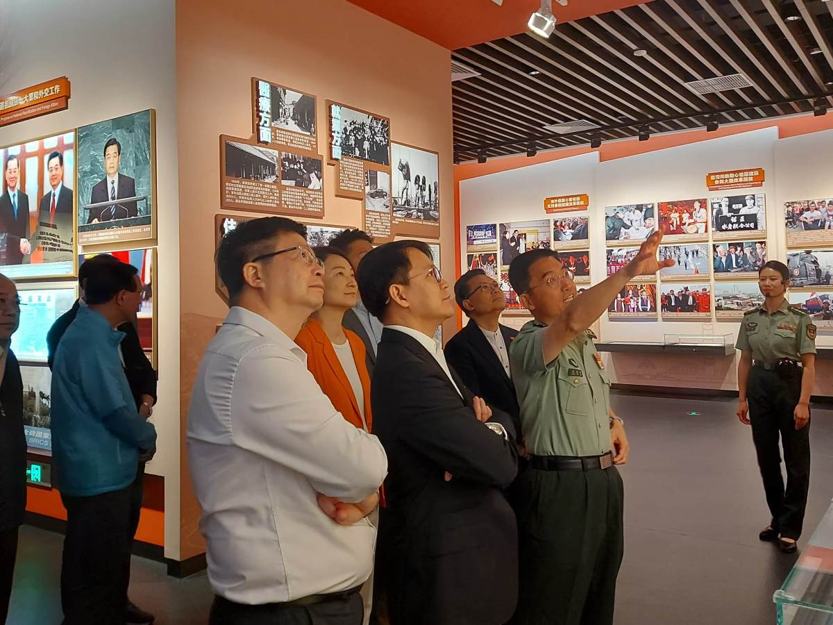 在王志學大校帶領下,一行人先後參觀總序廳、中國夢展廳、强軍夢展廳、香江衛士展廳,並合影留念。