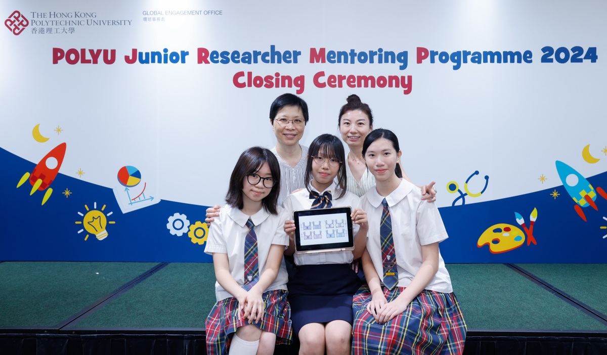 三位分別來自聖保祿學校和香港浸會大學附屬學校王錦輝中小學的學生則以「數碼時代的運動服飾設計」為主題進行研究,並由理大時裝及紡織學院教授易潔倫和助理教授 (研究)史秋琼擔任導師。學生們在項目中學習親自設計運動內衣,她們分享指:「我們一直都對時裝設計很感興趣,項目除了涵蓋實在的設計知識外,亦讓我們了解到相關的科技趨勢。最難得的是,我們有機會參觀及了解先進的4D身體掃瞄儀器和動作捕捉系統,並作為模特兒親身體驗這些嶄新技術,大開眼界之餘,亦對科技如何影響時裝設計有更深刻的體會。」