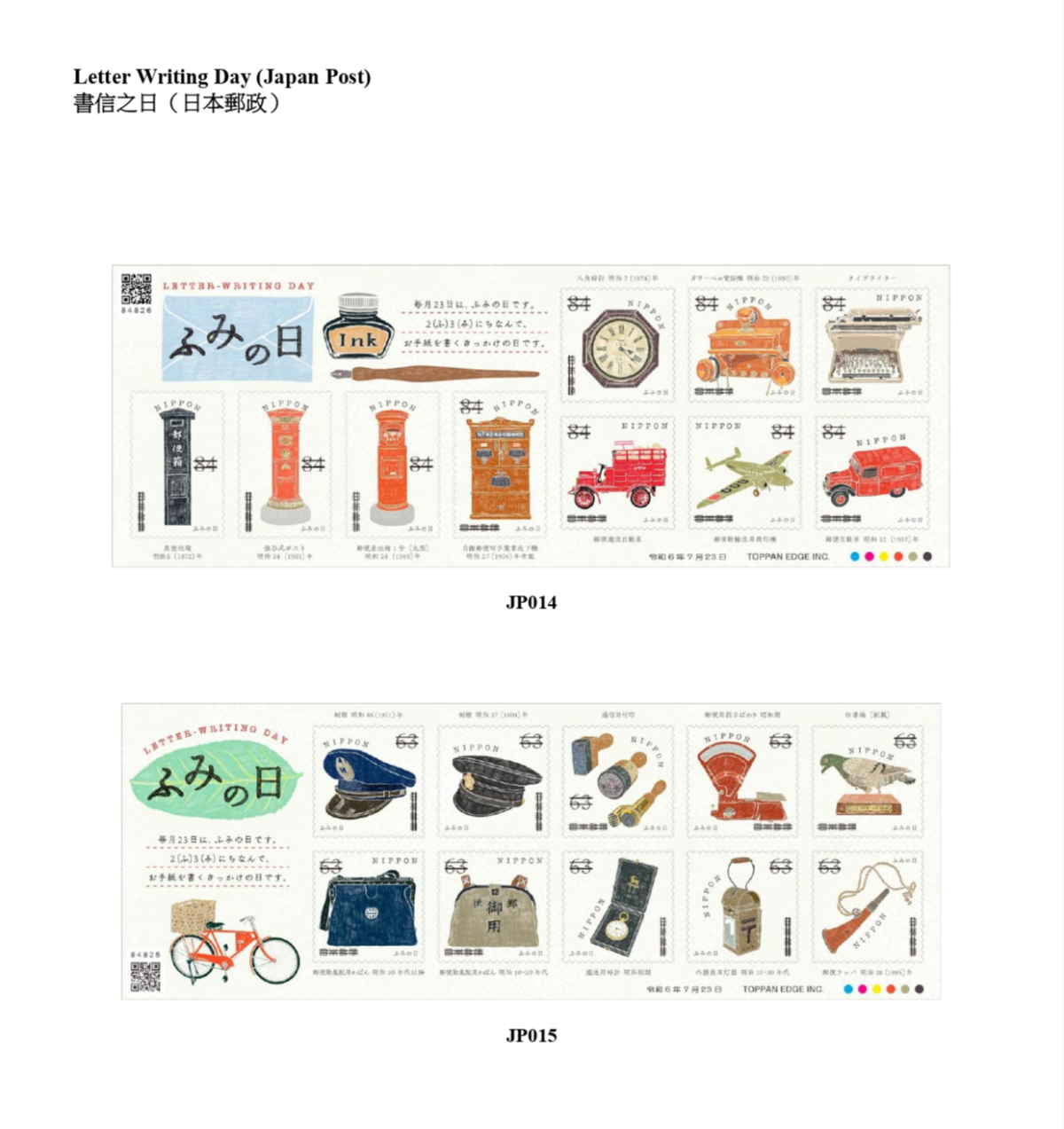 法國郵政發行一枚以法式長棍麵包為題的郵票,並以紅、白、藍三色絲帶作點綴。郵票以特別墨水印刷,擦拭後會釋出法式長棍麵包的香味,展示非物質文化遺產的特色。為慶祝「書信之日」,日本郵政發行一套郵票,展示與郵遞及運輸相關的物品。新西蘭郵政發行一套郵票慶祝毛利新年。這些郵品極具收藏價值,熱愛當地文化的愛好者不容錯過。