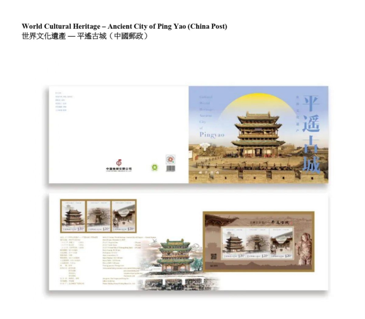 中國郵政發行「世界文化遺產—平遙古城」郵票。平遙古城於1997年獲列入聯合國教科文組織《世界遺產名錄》,擁有超過2800年歷史,郵票展示保存完好的古城風景。此外,澳門郵電發行數套集郵品,其中包括「仁伯爵綜合醫院150周年」紀念郵票,讓公眾深入了解仁伯爵綜合醫院的演變和發展歷程;而「澳門郵電140周年」郵票介紹其四大服務範疇,以慶祝澳門郵電140周年;以及「澳門非物質文化遺產」郵票,展現澳門世代相傳且具有豐富歷史文化價值的非物質文化遺產項目。