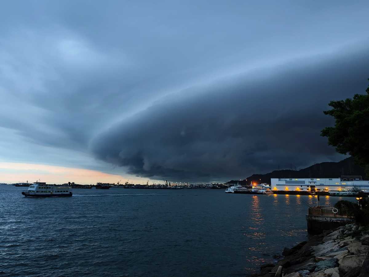 天文台表示,大雨前風雲變色,天空罕有出現呈水平卷軸狀或棚架狀的弧狀雲,這樣的雲是積雨雲的附屬雲,其持續的時間有時會很短,外表灰白色並呈水平卷軸狀或棚架狀,有如承托着暴風雨的棚架一樣。當這種雲團大規模逼近時,往往象徵着暴風雨即將來臨。