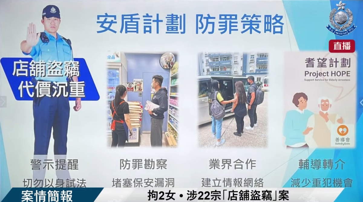 【點新聞報道】為針對「店舖盜竊」案,東九龍總區於去年8月啟動「安盾計劃」,並於前日(21日)展開執法行動,拘捕兩名43歲非華裔女子,涉嫌與本年2月至8月於全港多區發生的22宗「店舖盜竊」案有關,損失財物總值約港幣5.7萬元。警方今日(23日)對案情作簡報。