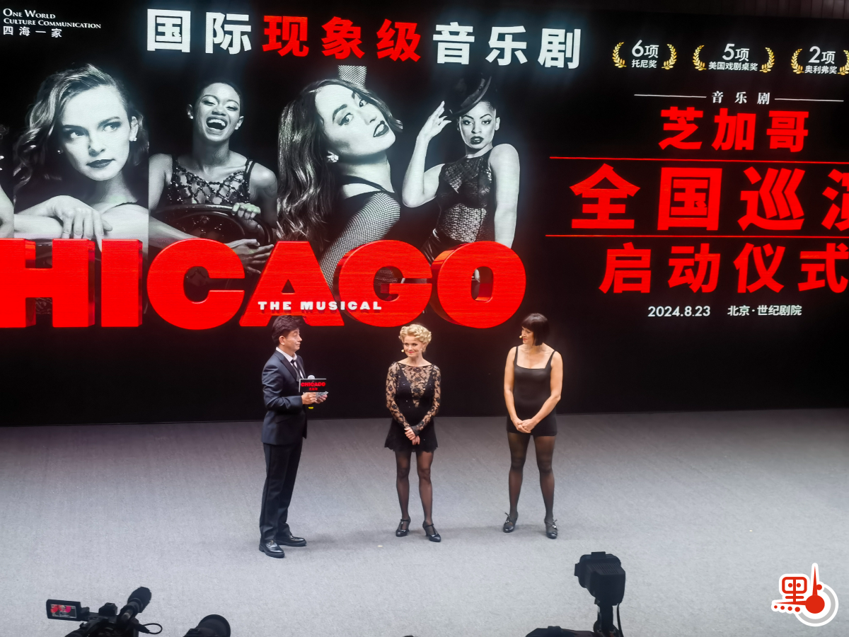 《芝加哥》「聯合出品方」及「全國巡演運營方」北京四海一家文化傳播有限責任公司副總經理楊鴻婭、國際巡演項目負責人蒂姆·裏德(Tim Reed)、劇中羅克西·哈特(Roxie Hart)的扮演者莎拉·索塔特(Sarah Soetaert)和維爾瑪·凱利(Velma Kelly)的扮演者米歇爾·安特羅伯斯(Michelle Antrobus)出席啟動儀式。