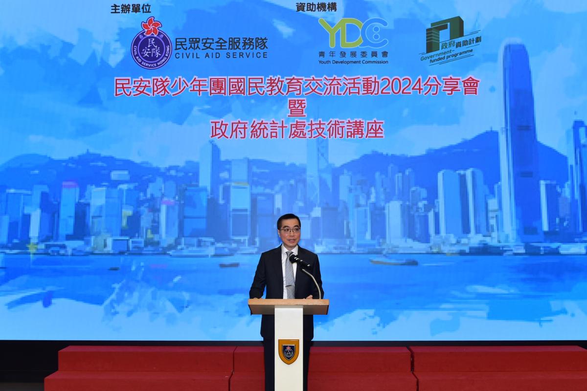 【點新聞報道】民眾安全服務隊(民安隊)少年團今日(24日)於民安隊總部舉行國民教育交流活動2024分享會暨政府統計處技術講座,政府統計處處長余振強擔任本次活動的主禮嘉賓。