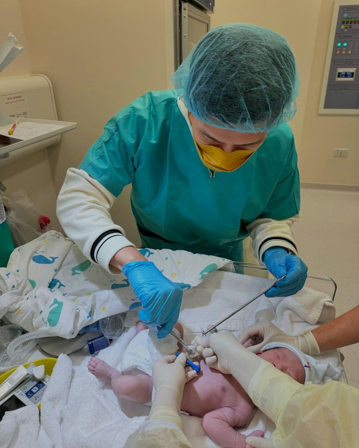 據知Darrien出世時重2.84kg,入產房前太太打算順產,但在醫院十多小時後她開始發燒,BB心跳也跳得很快,在沒辦法之下唯有接受剖腹產子。她說:「當時雖然好攰,但我好驚瞓着,瞓咗就見唔到BB,甚至瞓咗以後都唔醒。」太太要緊急剖腹產,林奕匡也相當緊張,他受訪時直言進入手術室後,醫生突然給了他一張寫着開刀手術風險資料,他說:「我突然好驚,人生從來冇試過咁驚,好驚Rikko同BB會有事。」他也表示,知道太太和BB在手術室中,所以不能讓他們知道自己緊張,所以就做了一個充滿柔和歌曲的playlist給他們聽。最後母子平安,林奕匡亦幫BB剪臍帶。