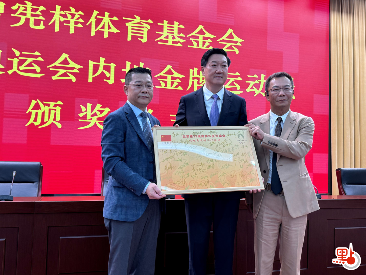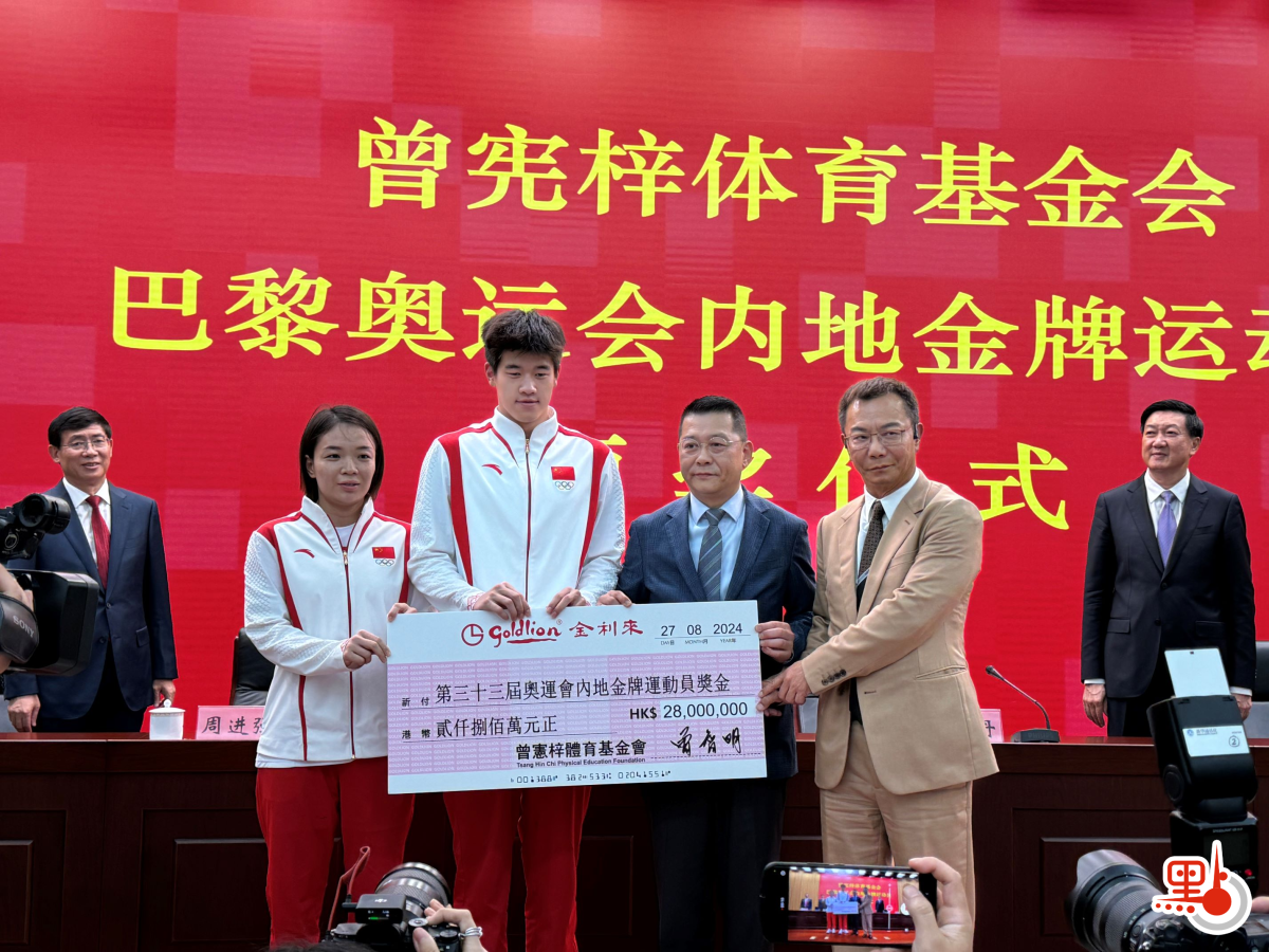 曾憲梓體育基金會理事長曾智明、曾憲梓體育基金會副理事長曾智雄向巴黎奧運會內地金牌運動員頒發了獎金支票。曾智明指出,在第33屆夏季奧林匹克運動會上,中國體育代表團創造了多個歷史紀錄,不負海內外中華兒女眾望,以昂揚的鬥志、高超的技能,在巴黎奧運會上大放異彩,顯示出巨大的潛力和實力,向全世界展現了中國力量,傳遞了中國精神,標誌着中國體育發展的新高度,並創造了國家隊在境外奪取奧林匹克金牌最多的紀錄!