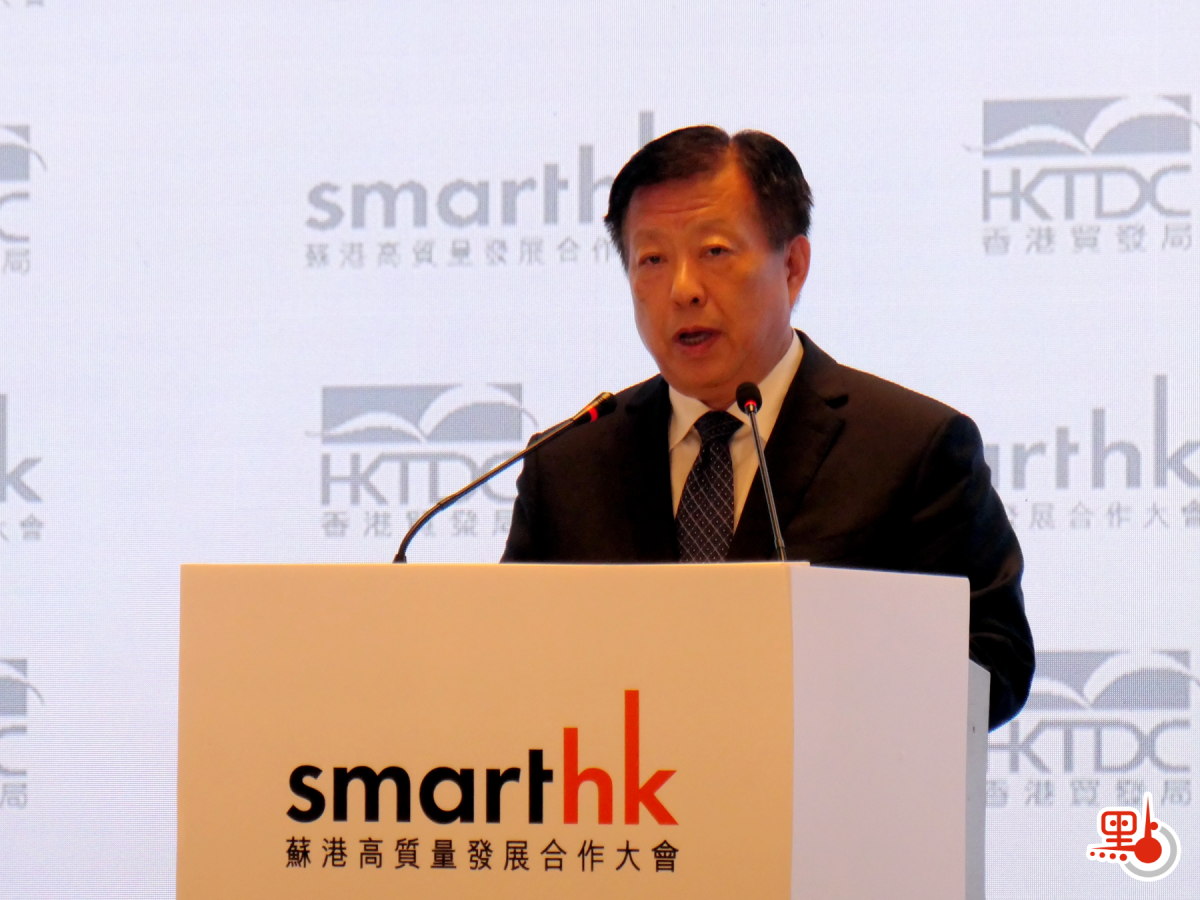 【點新聞報道】由香港貿易發展局主辦、江蘇省商務廳和江蘇省港澳辦合辦的「SmartHK蘇港高質量發展合作大會」今日(28日)在南京舉行。江蘇省人民政府副省長方偉在會上指出,多年來,香港一直保持着江蘇第一大外資來源地和第一大境外投資目的地的重要地位。截至今年七月,超過3.5萬家港企落戶江蘇,江蘇實際使用港資達2700億美元,佔全省實際使用外資的13%;江蘇累計在香港設立2400家企業,協議投資超過260億元(人民幣,下同),佔全省境外投資總額的23%。