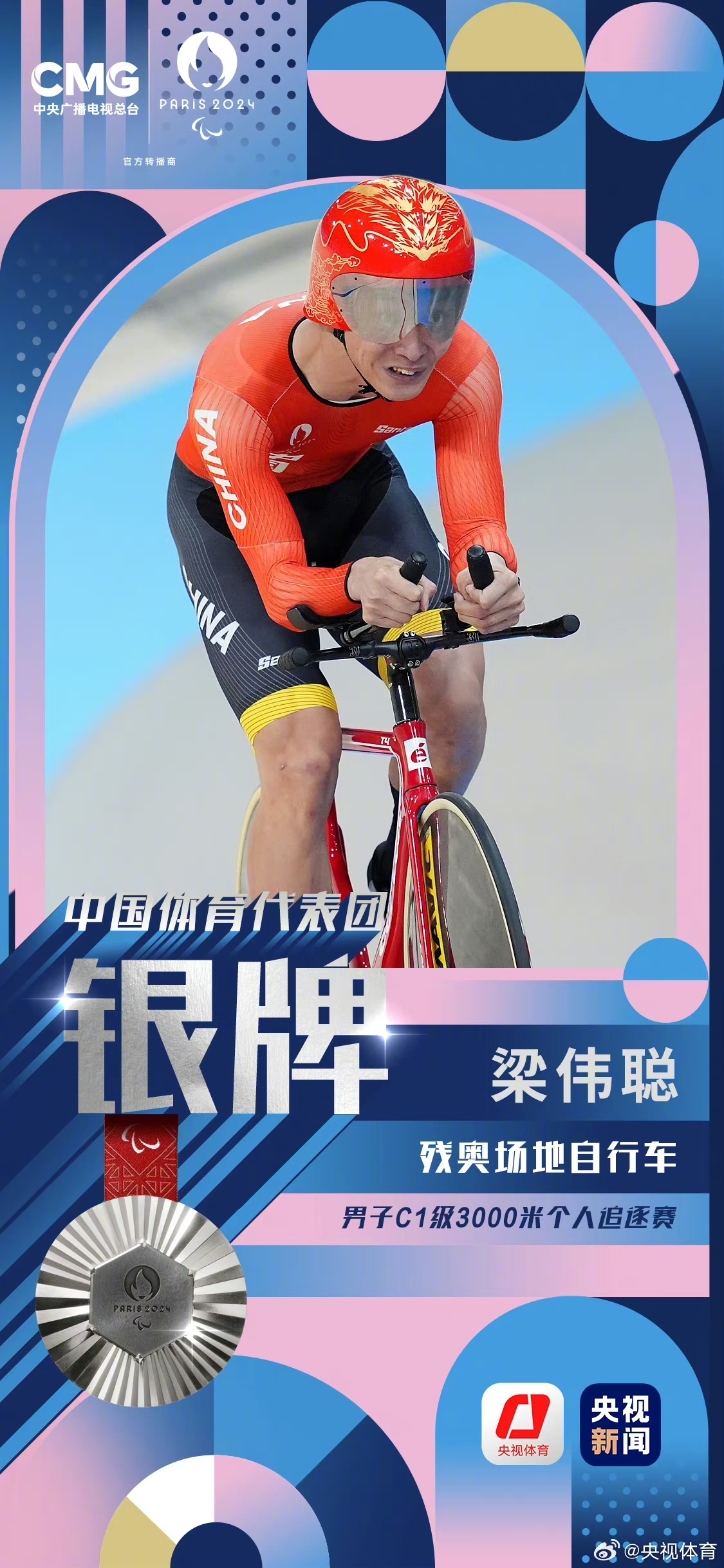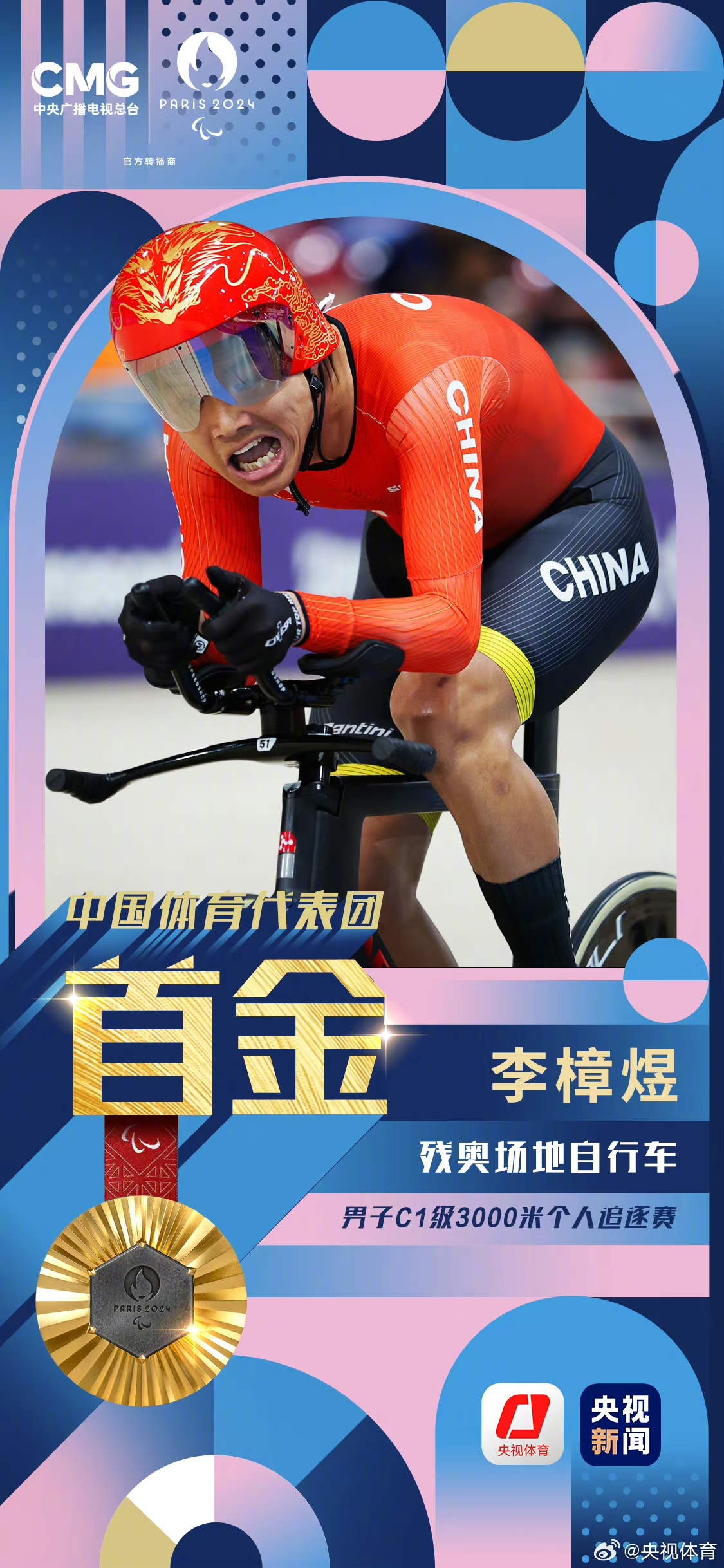 巴黎殘奧會場地單車男子C1級3000米個人追逐賽,中國選手李樟煜和梁偉聰晉級金牌賽,中國隊提前包攬金銀!最終,李樟煜奪得金牌,這是本屆殘奧會中國代表團首金!同時也是他殘奧會個人第5金!梁偉聰獲得銀牌!