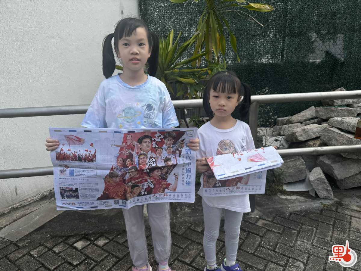 即將升小學五年級的Angela住在聖保羅書院附近。早晨聽到有車輛和警察的聲音,知道是運動員來了,馬上和同樣喜歡奧運健兒的媽媽飛奔趕至。在樓下看到《大公報》推出的奧運特刊,上面有很多自己認識的運動員,於是就和妹妹一人拿了一份。