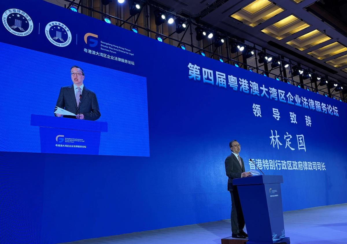 【點新聞報道】律政司司長林定國今日(30日)在珠海出席第四屆粵港澳大灣區企業法律服務論壇,並作開幕致辭。