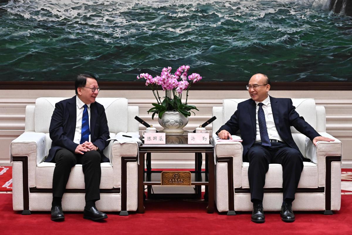 【點新聞報道】政務司司長陳國基昨日(30日)展開哈爾濱訪問行程,與黑龍江省委書記許勤會面,向他介紹香港的最新情況,並就推動和深化兩地交流合作交換意見。陳國基表示,兩地在經濟、貿易,文化藝術等多方面一直保持緊密的聯繫和交流。香港擁有背靠祖國、聯通世界的獨特優勢,在「十四五」規劃、粵港澳大灣區發展等國家重點戰略下,兩地可實現更深層次的合作,達至優勢互補,互利共贏,共同助力國家高質量發展。