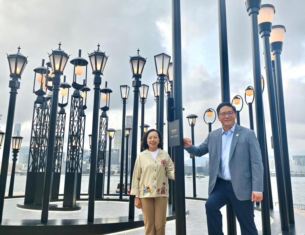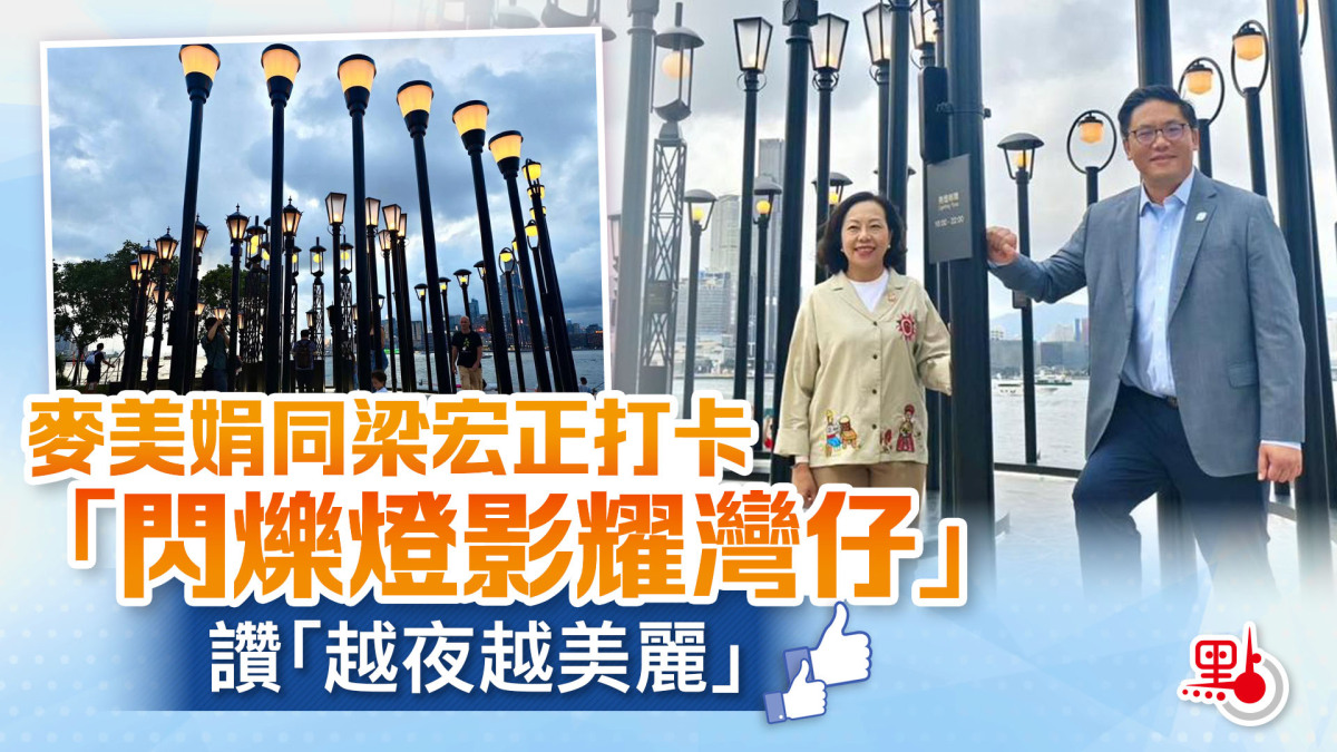 【點新聞報道】民政及青年事務局(民青局)局長麥美娟今日(9月1日)在社交平台發文,指近日灣仔民政處在海濱長廊新設「閃爍燈影耀灣仔」裝置,她同民青局副局長梁宏正前來「打卡」。