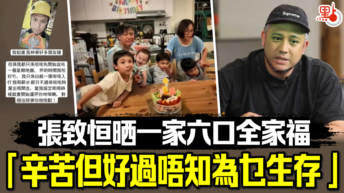 張致恒昨日在ig貼出一家六口全家福照,寫道「張天樂一歲生日啦,呢張相就係我哋平時嘅生活寫照,四個仔真係好難搞,根本冇可能可以正常影到一張相,但係可以照顧一個屋企係我嘅福份,我鍾意呢一份熱鬧,雖然係辛苦,但係總好過唔知為乜生存!」。