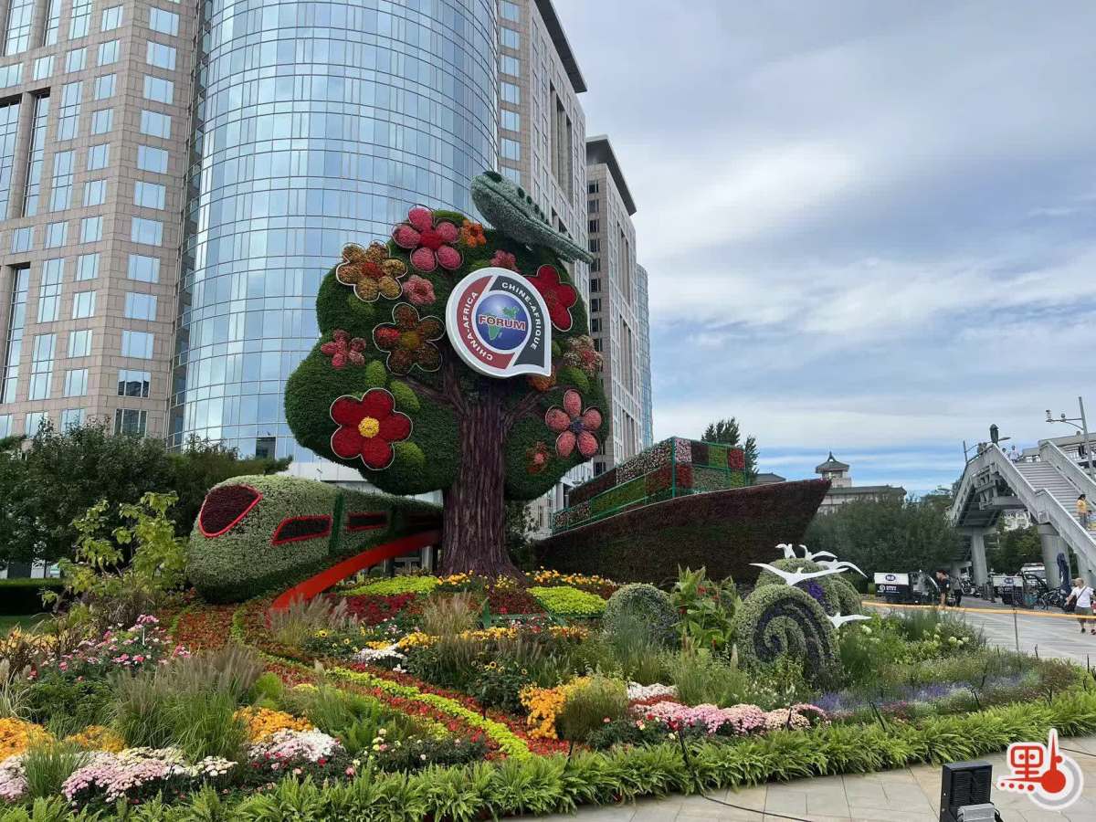 其中,位於長安街東單路口東南的「命運與共」花壇,以高超的園藝技巧還原了憨態可掬的國寶熊貓和來自非洲大草原的斑馬、長頸鹿等動物,寓意中非友誼長存,共同書寫命運與共的新篇章;路口西北的「合作共贏」花壇,將貨輪、飛機、以及「中國名片」高鐵動車組融入了設計,寓意中非秉持互聯互通的友好合作精神,共同建設美好未來;位於西單路口西北的「美好藍圖」花壇以科技園區為設立理念,展示了腦機接口技術、智能機器人、無人送貨車等尖端科技產品,寓意推動中非開展科技創新合作,共繪高水平中非命運共同體新圖景;而「共同發展」花壇則以首都花園商圈為主景,配以非洲特色農產品以及工藝品等,寓意中非通過貿易互利合作,展現蓬勃的經濟活力。