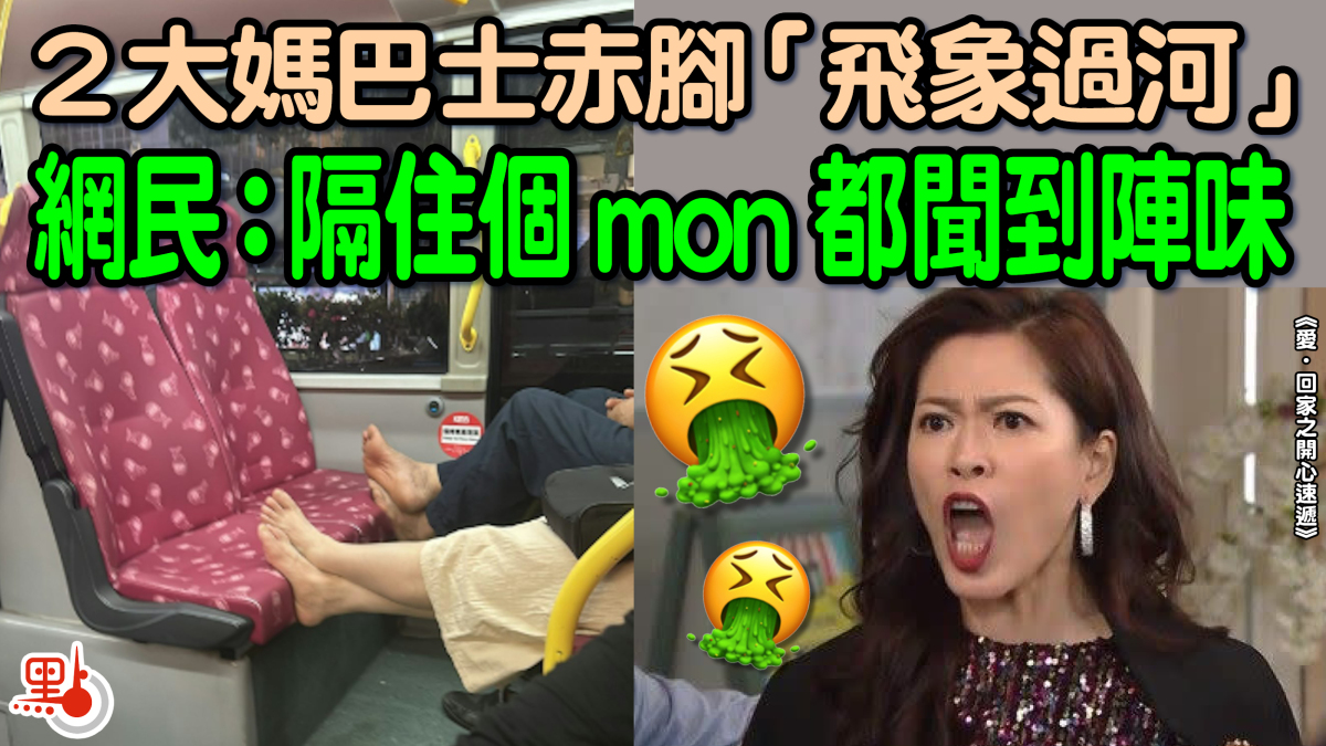 「隔住個mon都聞到陣味」!有女網民在社交平台公審兩名大媽,指她們乘坐巴士時,竟在四人卡位上脫鞋,光着腳晾在對面座位上,畫面十分噁心。帖文旋即引起網民熱議,不少人鬧爆大媽「好冇品,又臭」、「好核突啊」「真是以後唔敢坐」。