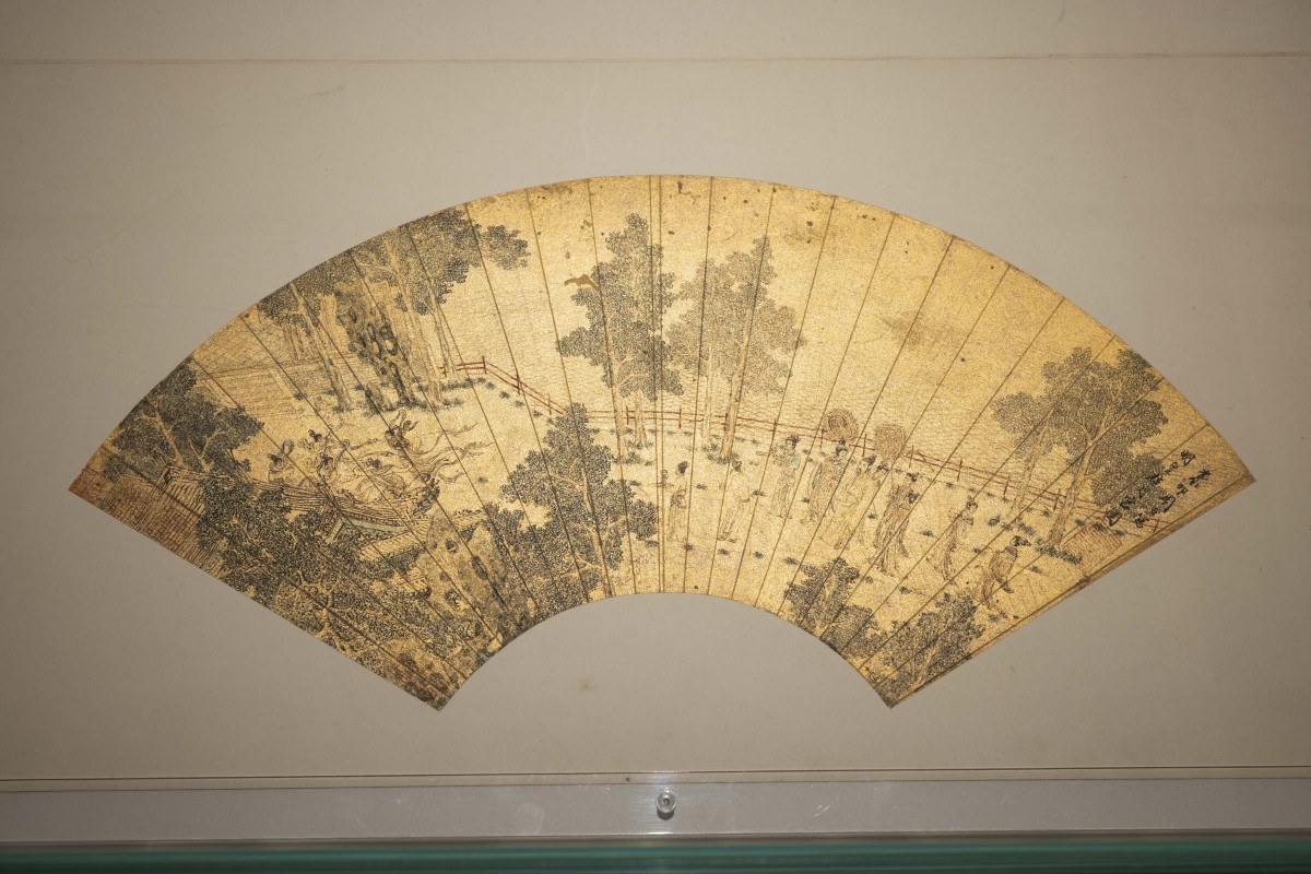 此扇即以該典故入畫。圖中玄宗貌為中年,氣宇軒昂,在侍從、宮女的陪伴下漫步月宮,不遠處眾仙娥正翩然起舞,衣帶飛揚。