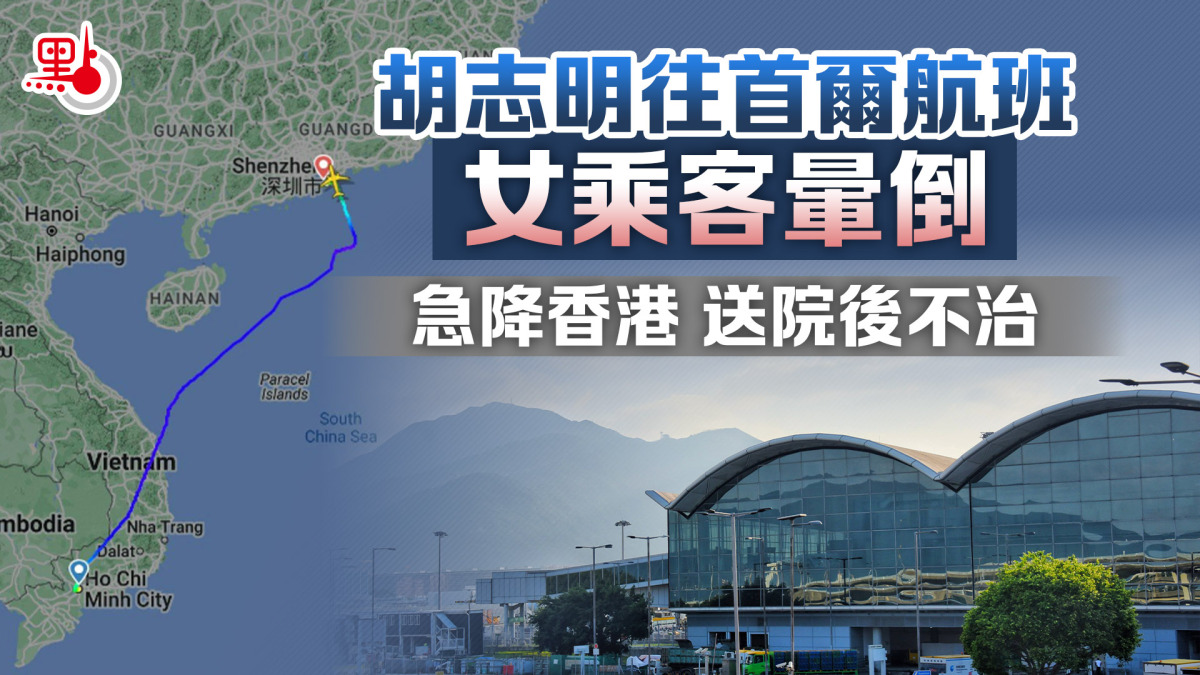 【點新聞報道】越捷航空今日(4日)一班從越南胡志明市飛往韓國首爾的航班上,一名40多歲越南女子暈倒,航班緊急降落香港國際機場,救護員將女子送至北大嶼山醫院,其後證實不治。