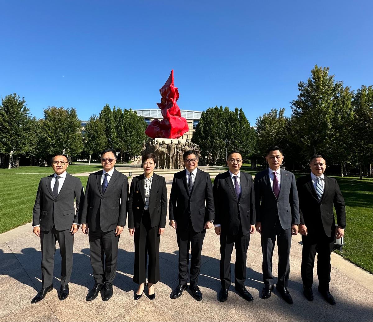 鄧炳強與交流團昨日(5日)抵埗,展開為期5日由公安部籌劃的研修交流課程。交流團今日早上在天安門廣場觀看升旗儀式,其後出席於國家行政學院和國防大學國際防務學院舉行的座談交流會和研修課程。
