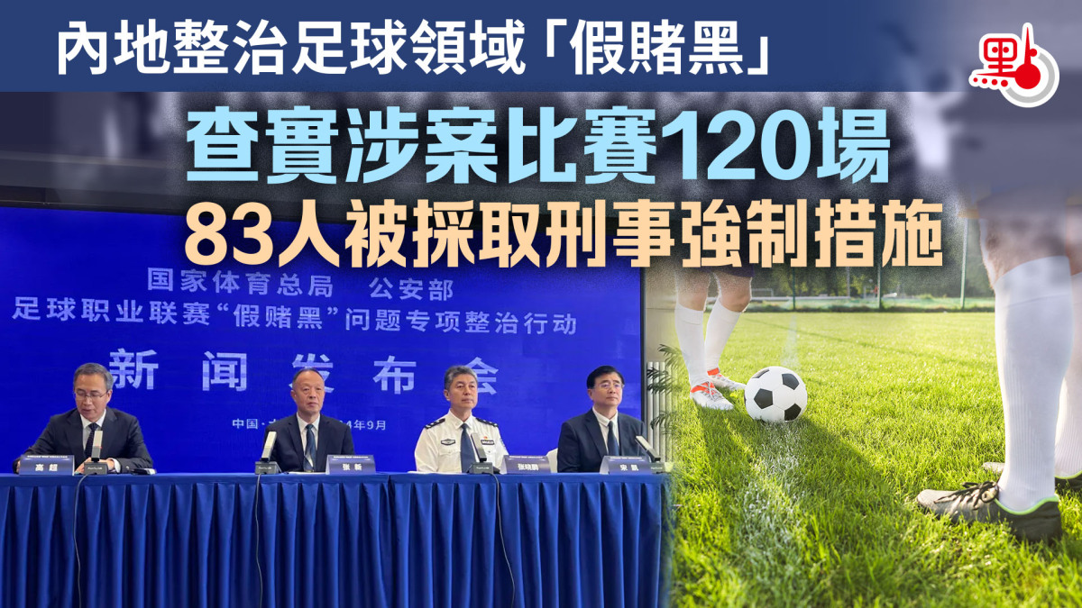 公安部治安管理局負責人介紹了公安機關依法嚴肅查處足球領域賭球、假球等違法犯罪情況。2022年以來,公安部重點交辦遼寧等地公安機關偵破相關賭球、假球專案,整體謀劃打擊網絡賭球、操控比賽、行受賄賂等違法犯罪,抓獲違法犯罪嫌疑人128人,打掉網絡賭博團夥12個,查實涉嫌賭球、假球比賽120場,涉及中超、中甲、中乙、足協盃、女超等足球聯賽,先後涉案的中超、中甲、中乙俱樂部球隊共41支,對83名涉案球員、裁判員、教練員、俱樂部管理人員依法採取刑事強制措施。目前,已有44名涉案足球從業人員被法院依法作出判決,34人被依法判處有期徒刑以上刑罰。