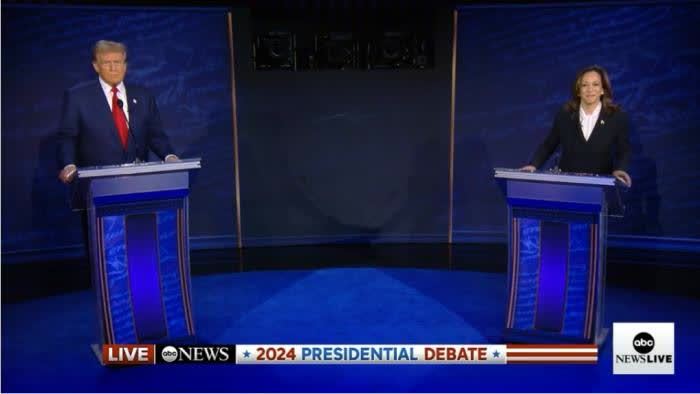 當地時間9月10日晚,美國民主黨總統候選人、副總統哈里斯與共和黨總統候選人、前總統特朗普展開了作為總統候選人的首場辯論。