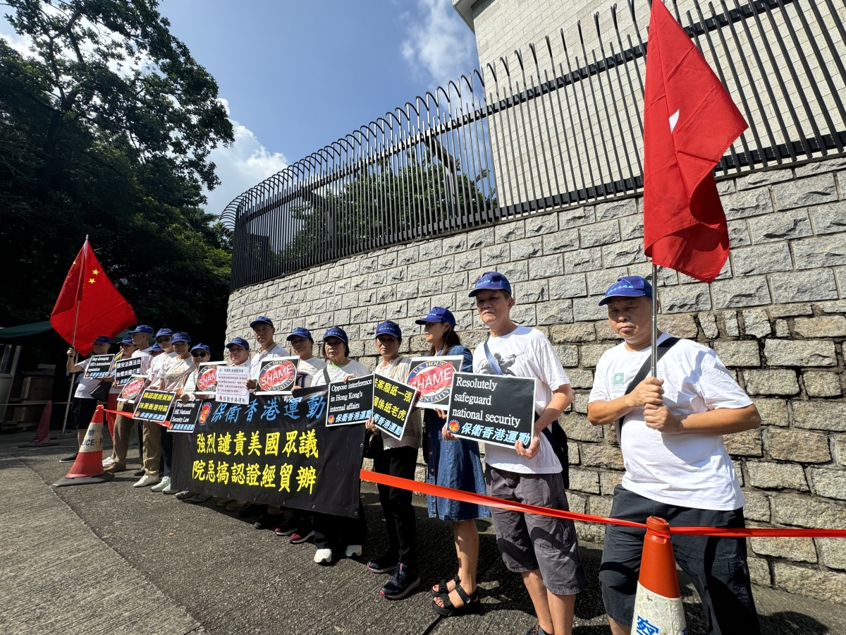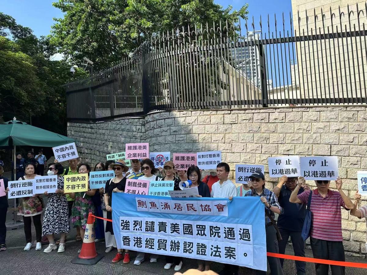 不少市民團體今日亦到美領館外抗議。有市民譴責美國眾議院通過涉港惡法,惡搞香港駐美經貿辦,打擊香港對外經貿合作,認為所謂「制裁」伎倆不得人心,倒行逆施,必遭反制。