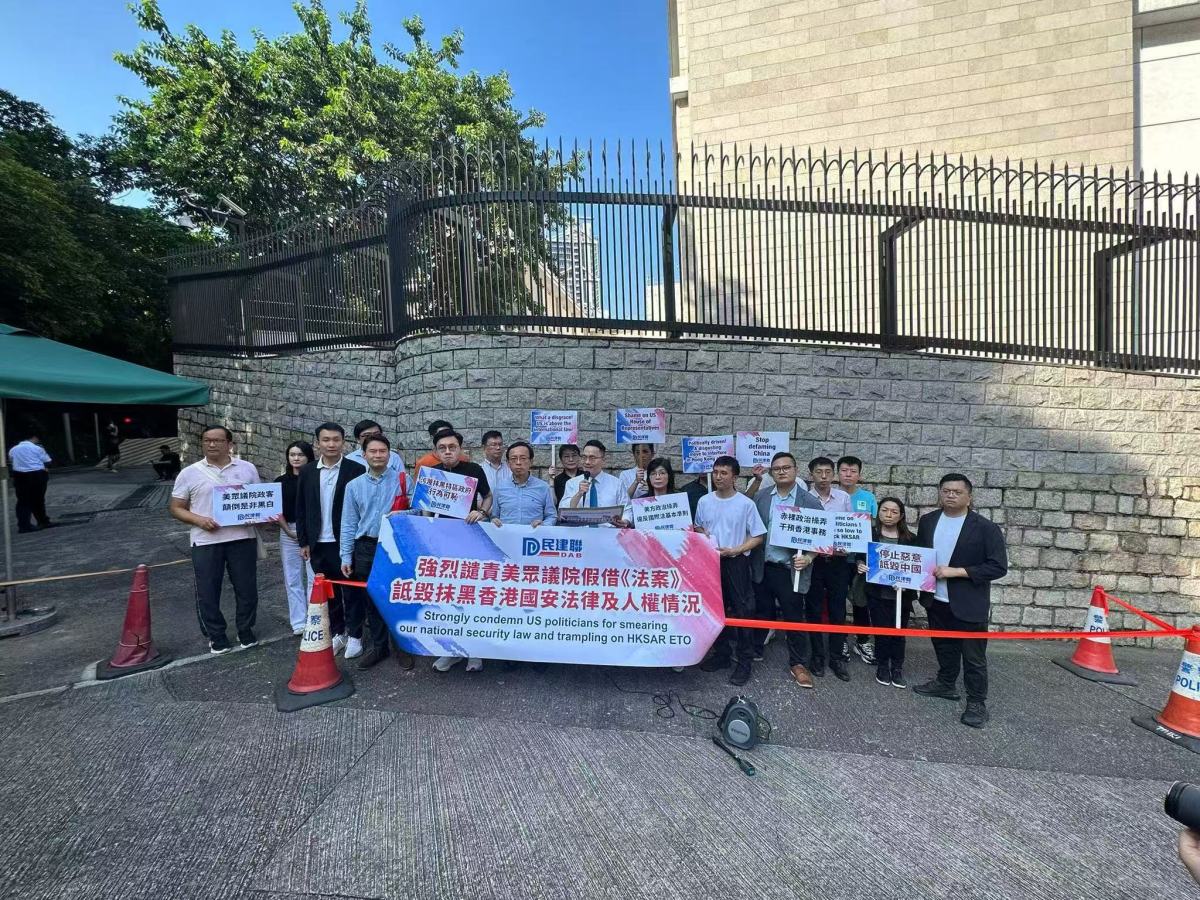 【點新聞報道】美國國會眾議院表決通過所謂的「香港經濟貿易辦事處認證法案」,鼓噪取消香港特區駐美經貿辦事處的特權豁免待遇甚至關閉辦事處,打「法案牌」干預香港事務和中國內政。民建聯立法會議員梁熙聯同多名民建聯區議員及青年民建聯成員,今日(11日)到美國駐港領事館外表達強烈抗議,強烈譴責美議院一而再地歪曲事實,詆毀本港。