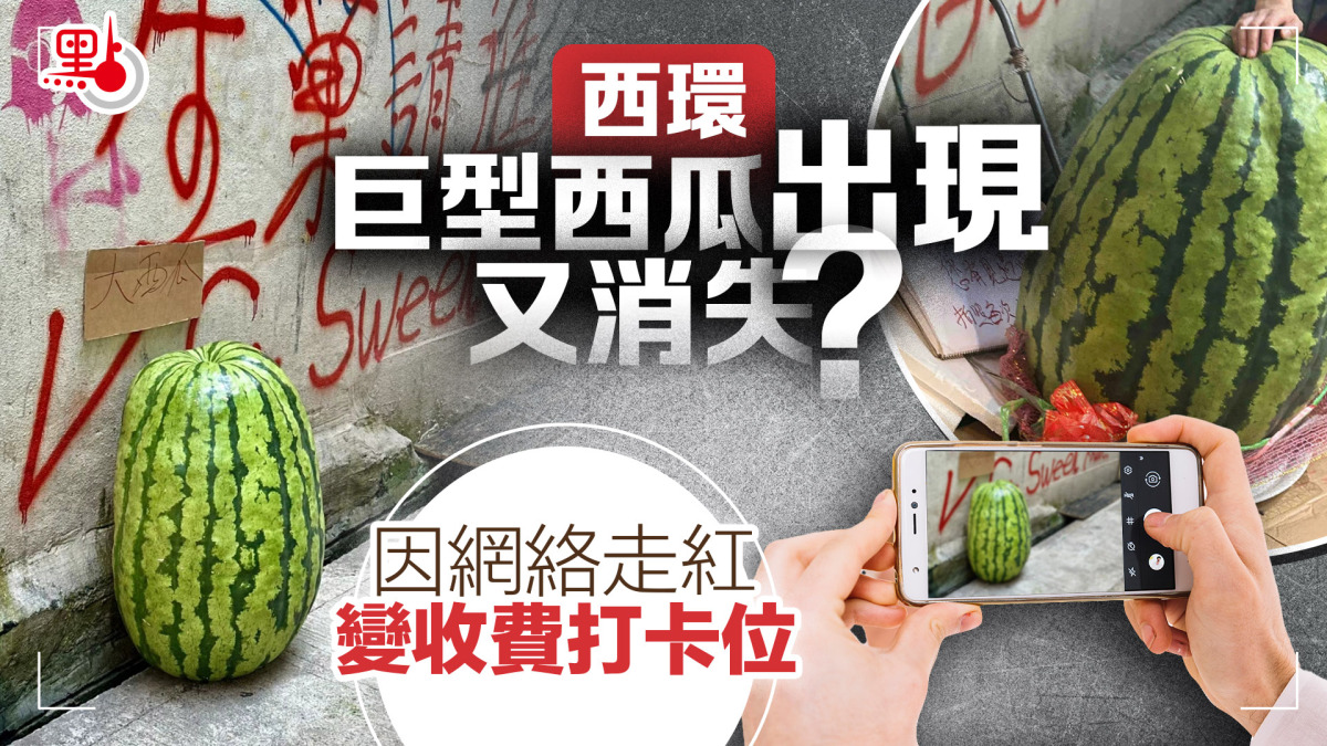 近日,有網民在小紅書上發帖,稱在西環一條後巷看到一個巨型西瓜。一時間火爆全網,遊客紛紛去合影。據前去打卡的遊客描述,這個西瓜已成網紅打卡點,合影的話一次需要支付10元。不過,有網民反饋在9日前去尋找時,發現西瓜已經碎掉並倒下,而且於不久又離奇消失,讓人感到遺憾。