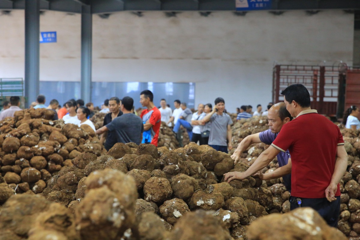 採訪團一行來到靖州茯苓加工貿易中心,只見現場熙熙攘攘、購銷兩旺,一片繁忙景象。自2019年11月投入使用以來,這裏便成為了茯苓產業的集聚高地。