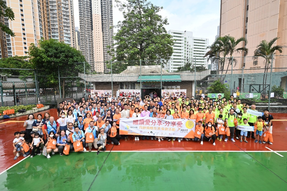 9月8日上午,華營義工隊參與了「LEAPS×PROHK繼續愛分享·分享愛——月餅捐贈及送福袋活動」。此次活動特別邀請了香港房屋局局長何永賢與義工一起為獨居長者派發福袋。