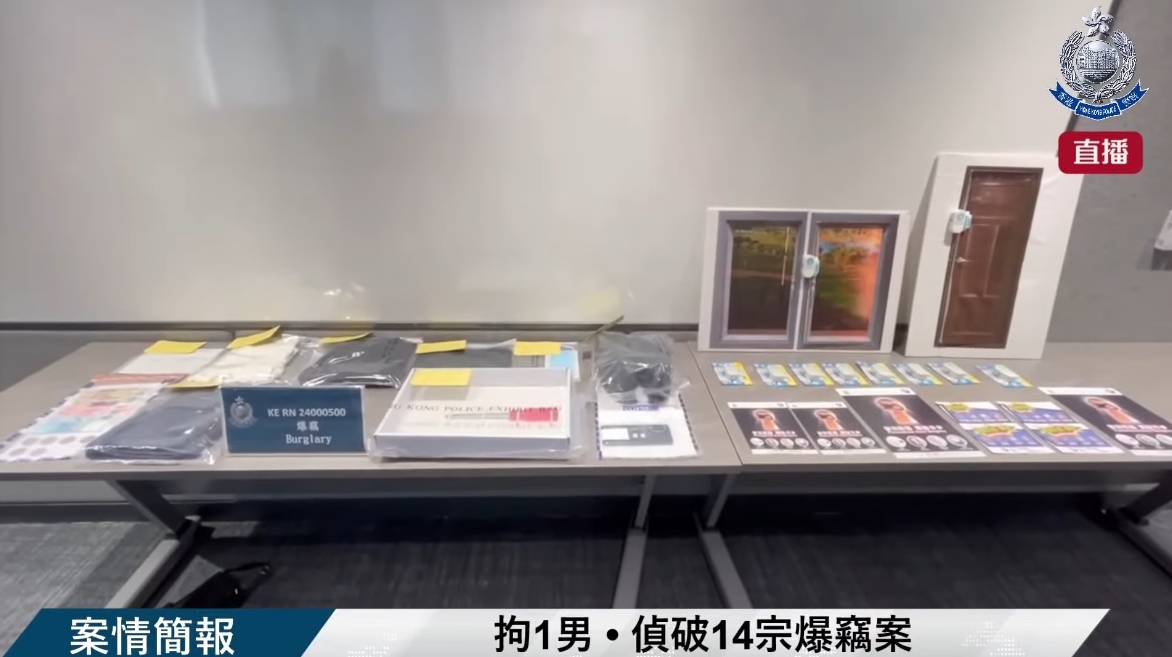 【點新聞報道】警方於9月11日拘捕1名34歲男子,涉嫌與本年1月起發生的14宗爆竊案件有關,爆竊地點主要為屋邨單位,損失金額約51萬港元,被捕人士現正被扣留調查。警方今日(13日)對案情作簡報。