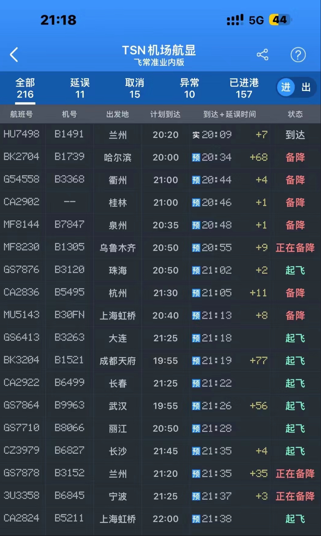 截至11日晚11時,航班延誤29架次,取消8架次,有32架次備降外場,3000餘名旅客出行受到影響。另外,航旅縱橫、飛常準等航空出行類應用上的信息也顯示,天津濱海機場從11日晚8時許便開始出現進出港航班的大面積延誤。