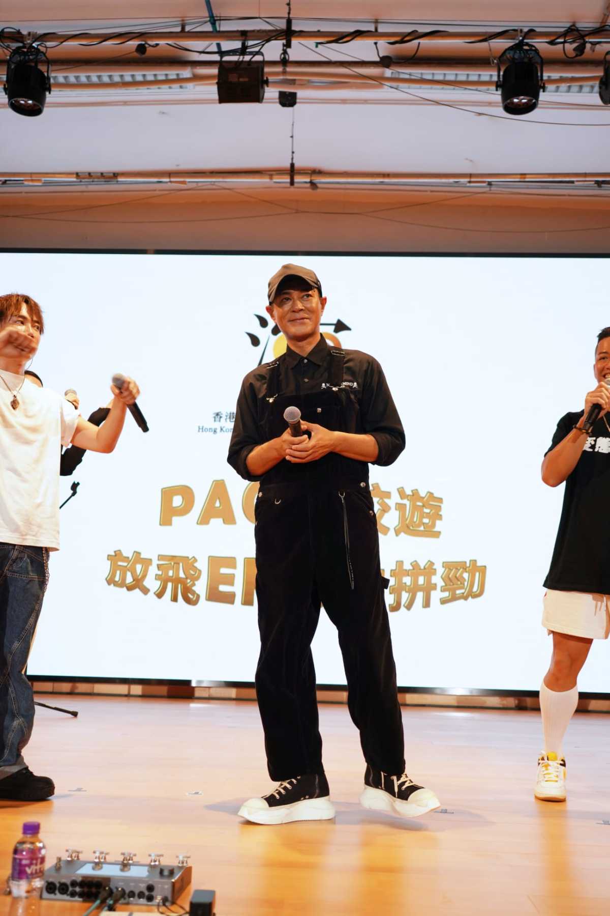 至於岑珈其、游學修就與同學大玩遊戲《口試王》令現場笑料百出,壓軸更由古天樂開金口獻唱《男朋友》,在全場高漲氣氛下,為演協首站School Tour畫上完美句號。