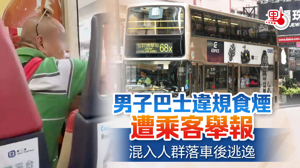 【點新聞報道】昨日(14日),有網民在FB群組「香港突發事故報料區及討論區」上傳影片,稱有一男子違規在68X巴士上吸煙。期間有乘客去提醒他,然男子並未搭理。之後車長表示要報警,男子匆忙混入下車的人群後逃跑「俾乘客和車長發現係太子地鐵站匆忙落車」。