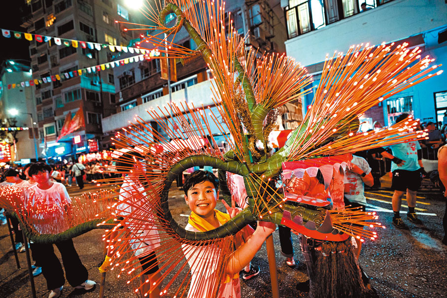 香港市民歡度中秋節的年度盛事大坑舞火龍活動,昨晚起一連三晚舉行,吸引大批巿民和遊客到場觀賞。主辦單位今年增添多項新元素,除浣紗街定點表演區外,更新增銅鑼灣道的定點表演區,另有100名小健兒舞動約1萬顆LED燈的小火龍。現場上萬名市民及旅客對這場震撼的火龍盛會讚不絕口,有澳洲遊客接受香港文匯報訪問時表示,見證到中國傳統節慶的美,活動讓他們零距離感受中國慶典的氣氛,直言會向朋友推介,並計劃再來港探索奧妙神奇的中華文化。