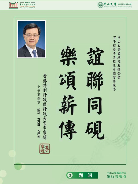 本次活動得到了香港政府及社會的高度關注和重視,行政長官李家超專門為音樂會題寫「誼聯同硯,樂頌薪傳」道賀,首任律政司司長梁愛詩、政務司司長陳國基、立法會主席梁君彥、中山大學前校長許寧生、中山大學前副校長李萍等多位重量級嘉賓也分別題詞道賀。