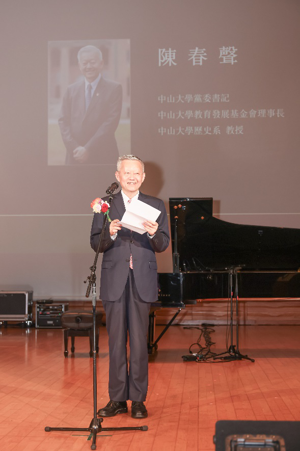 音樂會上,中山大學黨委書記、中山大學教育發展基金會理事長陳春聲致辭。他表示,中山大學不僅在學術研究和教育領域取得了卓越的成就,也在文化藝術的傳承與創新上展現了獨特的魅力。通過這場音樂會,希望能夠進一步加深校友之間的情感聯系,同時也讓更多的香港市民了解中山大學,了解中山大學的百年歷史和文化。
