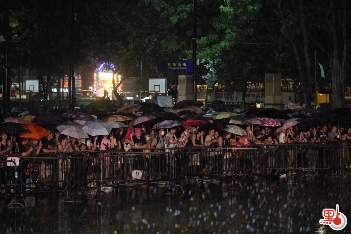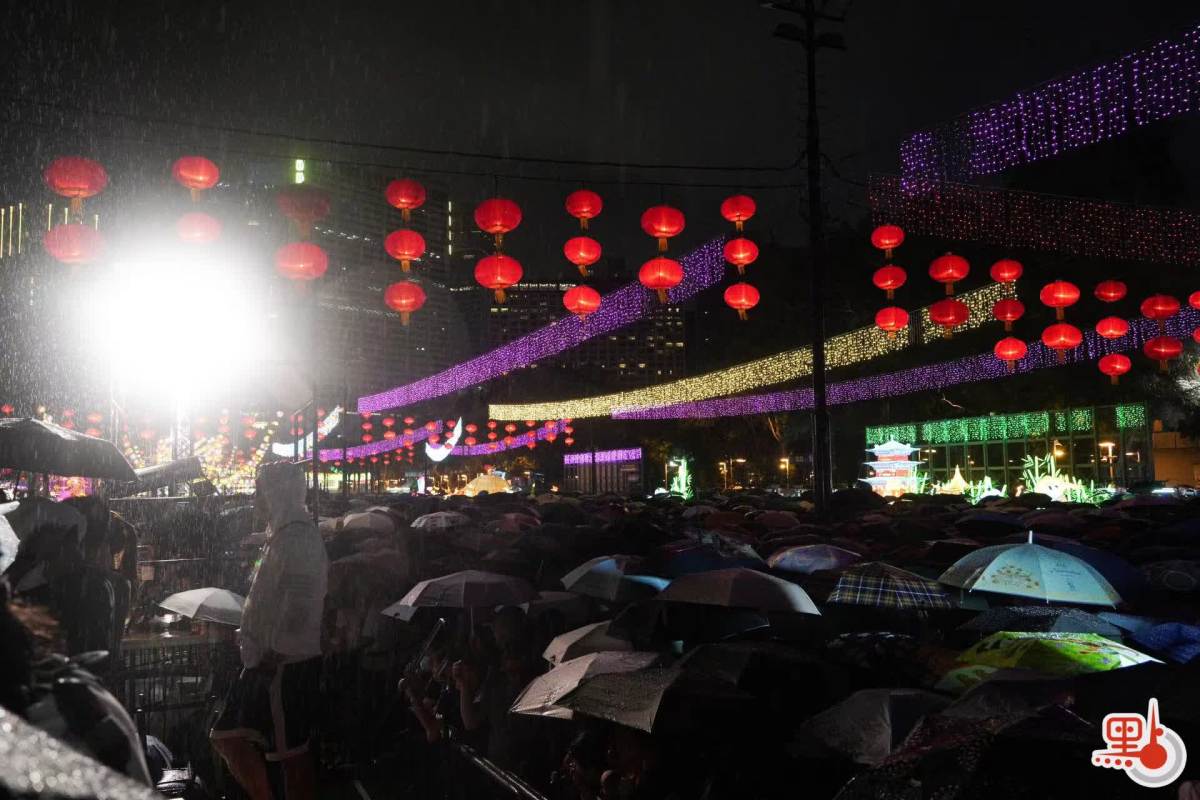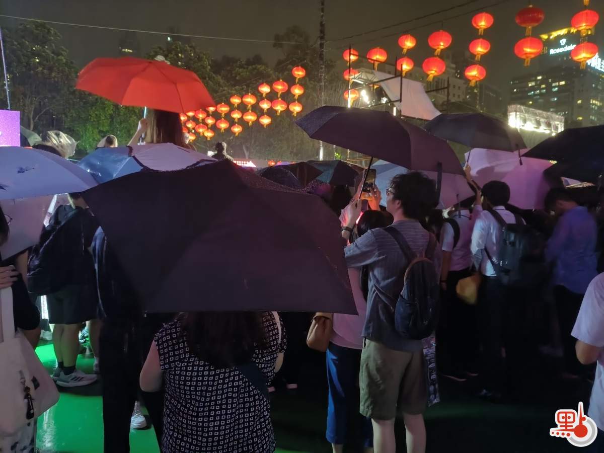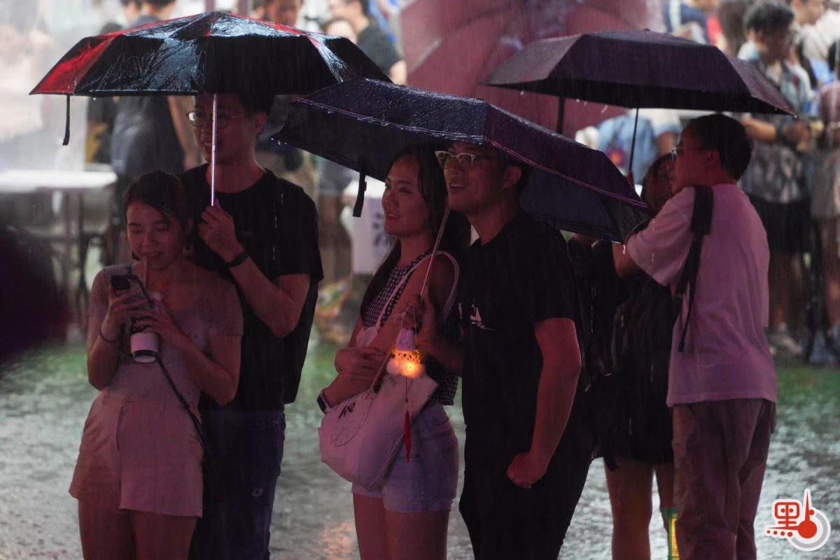 儘管大雨傾盆、雷聲陣陣,許多市民選擇放棄觀看火龍表演返回家中,但仍有不少忠實觀眾堅持在現場,他們撐着雨傘,站在人流外圍感受節日的氛圍。