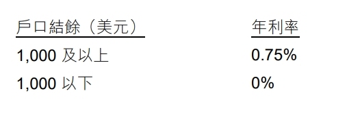 美元儲蓄方面,滙豐銀行同樣由明日(2024年9月20日)起,下調美元儲蓄存款戶口利率25點子,由年利率1.0%調低至0.75%。滙豐對上一次於2023年7月28日調整美元儲蓄存款戶口利率,當時加息12.5點子。