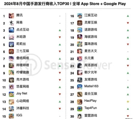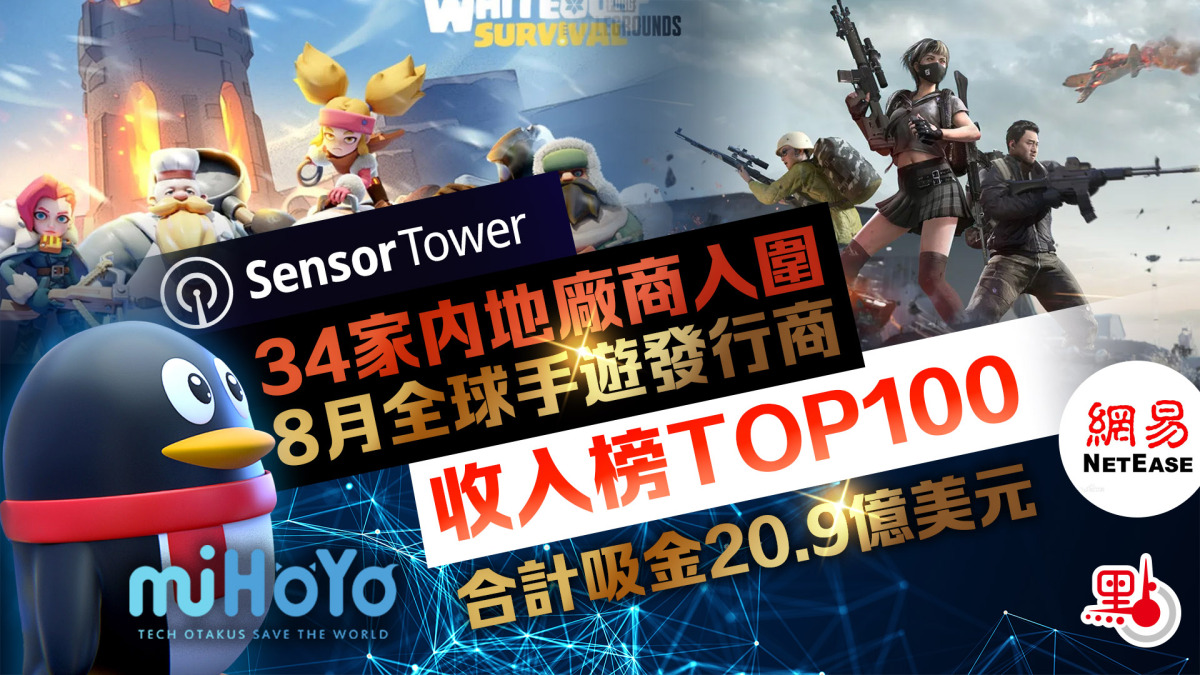 【點新聞報道】據商店情報平台Sensor Tower在9月18日發布的數據顯示,2024年8月,共34家內地廠商成功躋身全球手遊發行商收入榜TOP100,合計吸金20.9億美元,佔本期全球TOP100手遊發行商收入37.3%。